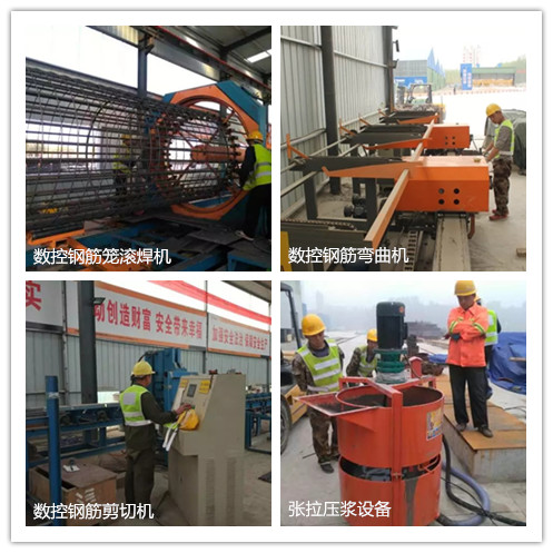 數控鋼筋籠滾焊機、彎曲機、剪切線、張拉壓漿設備等先進設備的應用,使預制箱梁生產達到了規?;?、工廠化的質量要求,發揮了科技創新的引領作用。