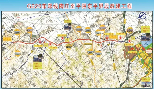 國道220平陰段改建工程是積極打造的省級精品示范工程之一,起點位于國道220平陰縣陶莊,途經玫瑰鎮、東阿鎮,終點位于平陰、東平界。全長19.4公里,概算投資約6.5億元。