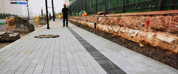 針對(duì)井蓋的頭號(hào)問(wèn)題“異響”,試行新版井蓋,精加工、增重量,提高安全性能,統(tǒng)一外觀設(shè)計(jì),徹底消除異響來(lái)源。檢查井均采用預(yù)制裝配式,避免檢查井沉降對(duì)道路產(chǎn)生的不良影響。在井蓋更換過(guò)程中,總結(jié)推廣檢查井蓋更換“十步法”,從切割到安裝,每一步驟都精心操作,施工過(guò)程中多次找平,科學(xué)測(cè)算填裝瀝青厚度,將精細(xì)化管理落到細(xì)節(jié),確保井蓋與道路嚴(yán)絲合縫。人行道鋪裝中使用高科技新材料Pc仿石磚,比普通花磚耐磨,防滑、美觀、色差小、顏色靈活,切割容易,可以根據(jù)需要切割成任意尺寸,鋪裝樣式多樣化。