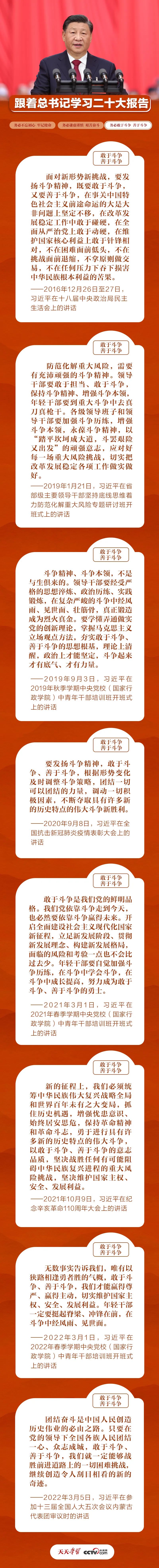 敢于斗爭是戰勝風險挑戰的前提,善于斗爭是戰勝風險挑戰的保障。黨的十八大以來,習近平總書記在不同場合多次強調要“敢于斗爭”“善于斗爭”。今天,我們梳理部分有關重要論述,與您一同學習。