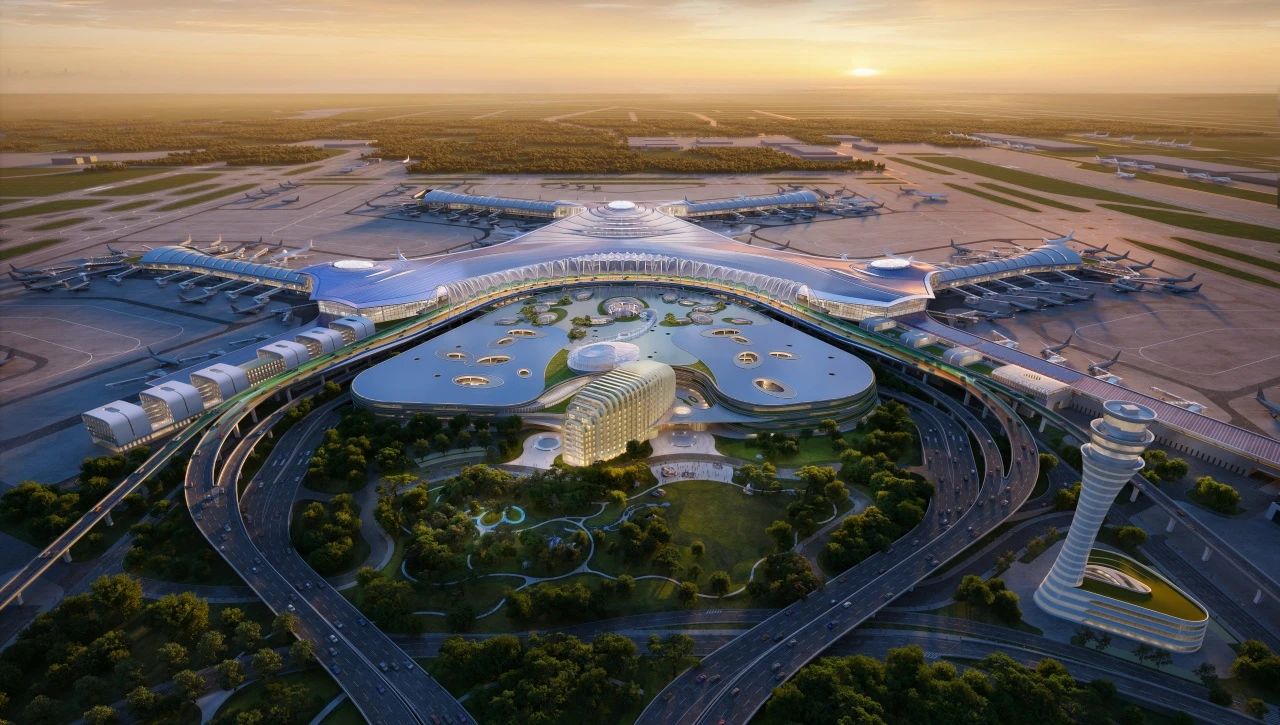 作為建設交通強國山東示范區的重大標志性、引領性工程,濟南機場二期改擴建工程新建60萬㎡T2航站樓,與17萬㎡現T1航站樓組成近80萬㎡航站樓,新建2條3600米跑道,與現跑道形成3跑道運行,新建38萬㎡綜合交通中心,引入濟濱高鐵和3條地鐵。