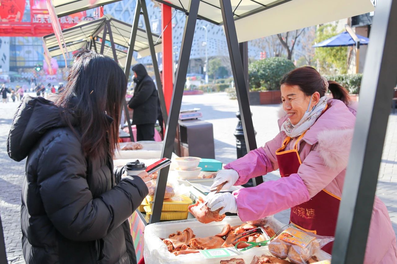 本次活動現場設置展位40余個,商河縣、槐蔭區興福街道、鋼城區顏莊街道及建設集團共40余位駐村“第一書記”為市民游客帶來了百余種特色農副產品。其中,商河大酥梨、玉皇廟豆腐皮、玉皇廟核桃酥、七彩野雞蛋、古梨醋飲、梨膏糖、臘八蒜、香酥煎餅、芝麻香油、泉水粉皮等優質農特產品“出村進城”,與廣大游客朋友見面,全方位展示了當地豐富的農業資源和獨特的農副產品,有力推動農業與文化旅游的深度融合,為鄉村振興注入新的活力。
